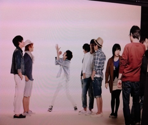 FT Island의 사랑 사랑 사랑을 부르는 이홍기의 모션을 따라하는 김희철을 바라보는 슈퍼 주니어 멤버들을 찍은 스텝."