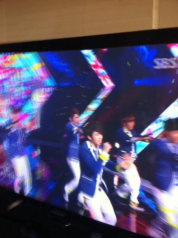 "자고 인나서 간만에 숙소서 애들이랑 인기가요 보는중~